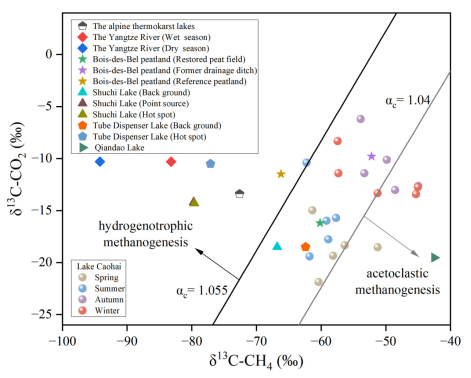 图3. 草海与全球其他湖泊的产甲烷路径