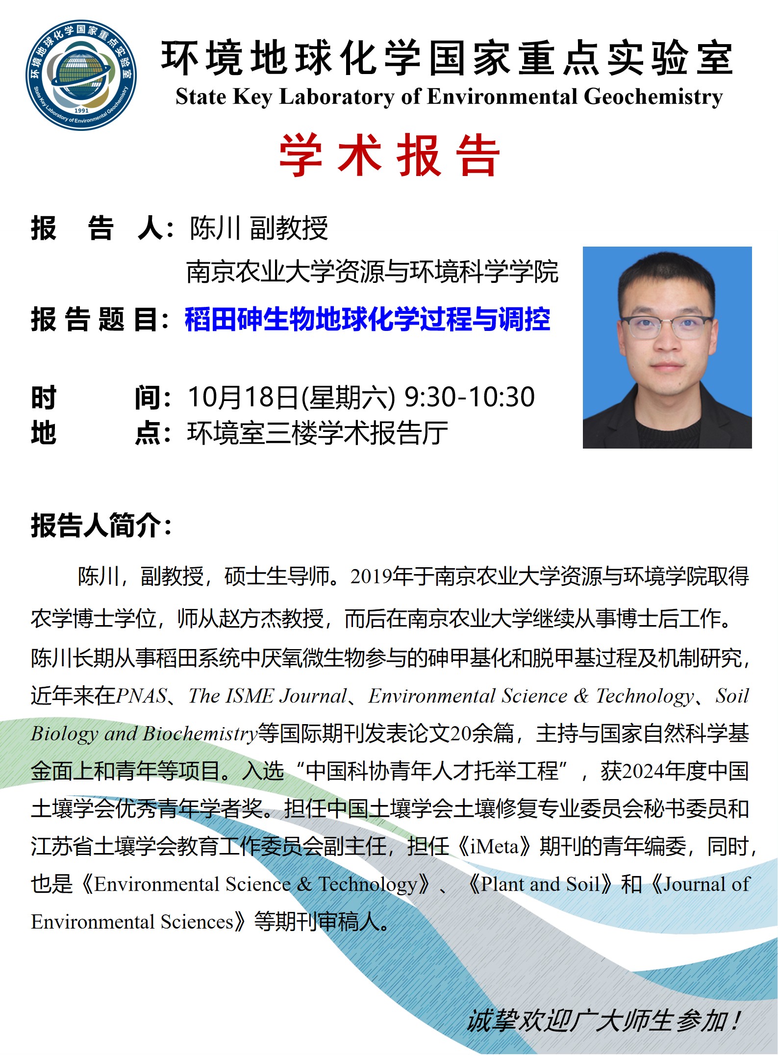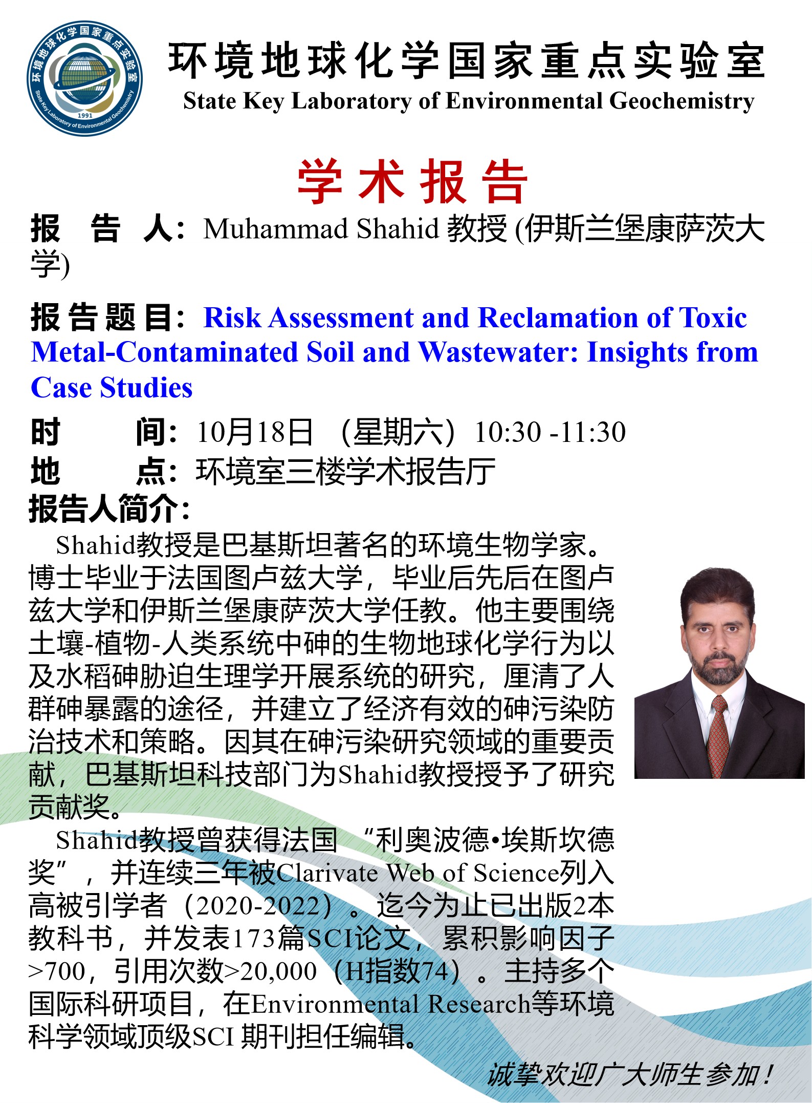 南京农业大学 陈川 副教授和伊斯兰堡康萨茨大学 Muhammad Shahid 教授学术报告通知
